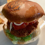 Hamburger di Marchigiana Filiera Cillo 1kg, insalata, pomodori ramati, cipolla di Tropea, provola di Pezzata Rossa e bacon croccante. Accompagnato da patata con fonduta di caciocavallo